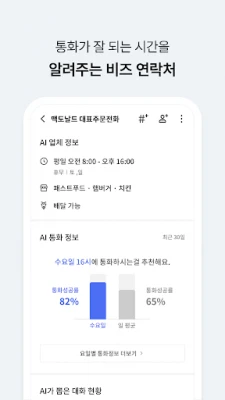 T114가 비즈연락처로 업그레이드 되어 AI가 해당 업체에 주로 어떤 사람들이 방문하는지, 언제 통화가 잘 되는지 알려줍니다