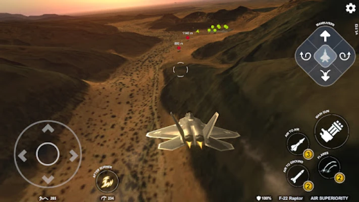 Realistic Air Combat: Experience authentic air combat maneuvers like Barrel rolls, Immelmann turn, and the highly tricky, Pugachev's cobra. Realistic combat systems like Air to air missiles, Air to ground missiles, Flares, and Afterburner give AeroMayhem an immersive aerial warfare experience.
