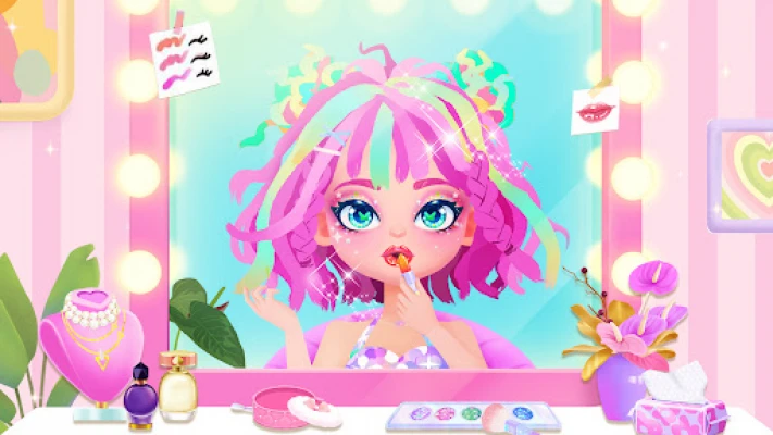 Each day is a new fashion salon quest! Dress up the girl in different styles, whether it's for a groovy dance or a cozy tea party. Get creative with your colors, cuts, looks, and makeup, and make her face shine!