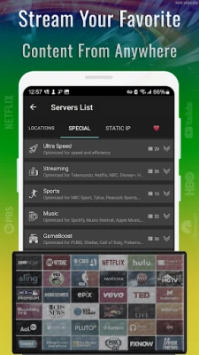 Access popular streaming platforms like Netflix, YouTube, and Vimeo securely.