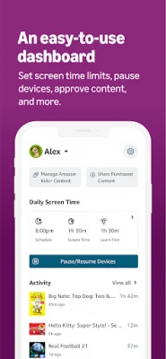 The Amazon Kids Parent Dashboard app is specifically designed to help parents and guardians build safe, healthy digital behaviors with their family across Amazon devices and the Amazon Kids+ subscription. Manage and customize your kids’ experiences with easy-to-use parental controls for up to 4 child profiles. Configure age-appropriate settings, set time limits, keep track of child activity, manage content, and more. The Amazon Kids Parent Dashboard App works with Fire tablets, Amazon Echo speakers, Kindle e-readers, Fire TV, and other mobile devices. An Amazon Kids+ subscription is not required to use the free parental tools.