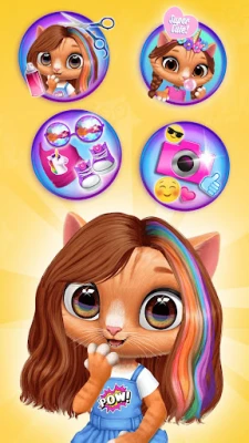 Lisa is the cutest baby cat girl with beautiful ginger fur. But her hair is so messy! Let’s help Lisa get her dream hair and outfit makeover! Curl, braid and dye the kitten’s hair in rainbow colors! Choose the cutest cat clothes with unicorn, cupcake and flower prints!
