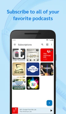 AntennaPod is a podcast manager and player that gives you instant access to millions of free and paid podcasts, from independent podcasters to large publishing houses such as the BBC, NPR and CNN. Add, import and export their feeds hassle-free using the Apple Podcasts database, OPML files or simple RSS URLs.