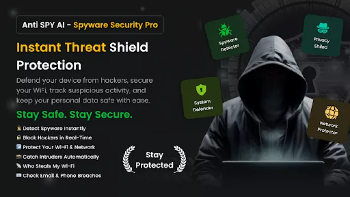 Anti Spy AI – Spyware Security helps you find potential spy apps and protect your privacy with AI-assisted scanning, permission control, Wi-Fi safety checks, and intruder alerts.