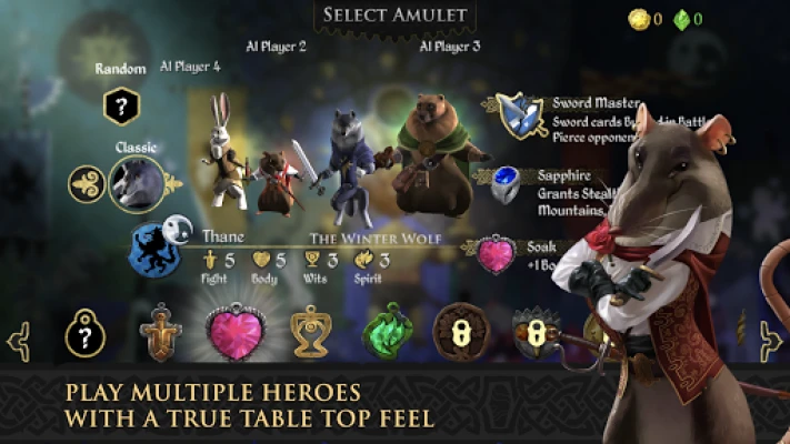• Multiple Playable Heroes: Each unique Hero possess a special power, stat line, AI personality and can be equipped with an Amulet and Signet Ring to further match your playstyle.