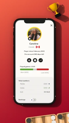Track your performance with comprehensive statistics. Analyze your gameplay, discover your strengths and weaknesses, and take your backgammon game to the next level.
