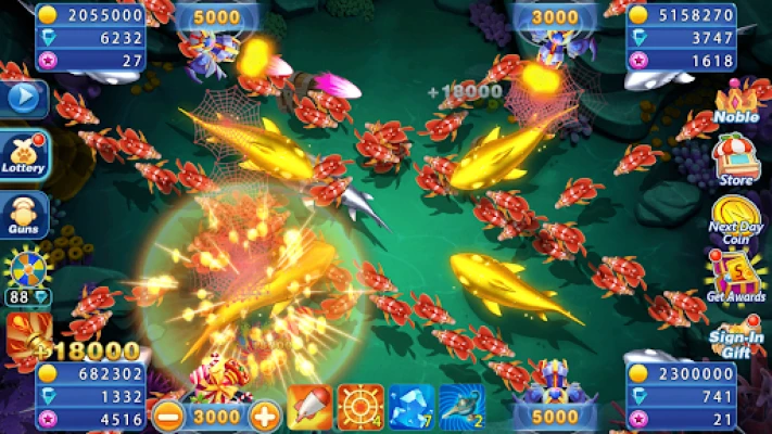 When you start the game, you are connected to a beautiful underwater world, there are countless colorful fish waiting for you to hunt. It has a lot of special features and aims to provide professional and easy-to-use weapons and nets for all levels of fishing hunters.