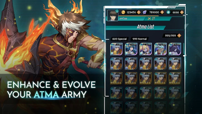 Collect, train, and customize your Atma, each with unique abilities and deep lore. Strategize your team composition and dominate turn-based battles in a visually stunning world.