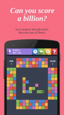 Want to take a challenge while relaxing during your free time? Are you know Tap Away style games? Forget them! This game will pump your mind to the highest level! Don't just tap away blocks! Slide blocks INTO the field to clean it. This is truly a challenge!