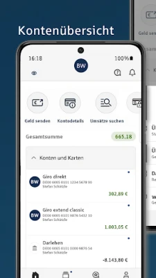 – Multibanking: Verwalten Sie Ihre BW-Bank-Konten in der App und ebenso Konten, die Sie bei anderen Kreditinstituten unterhalten.