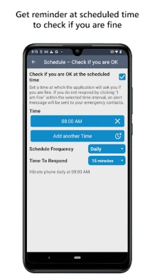 • Schedule your own safety check: Suppose you’re on a blind date or with a new group of friends. It’s important to take precautions and schedule a safety check. The application will ask you at a scheduled time if you are fine. If you do not respond by clicking “I am fine”, an alert message will be sent to your emergency contacts.
