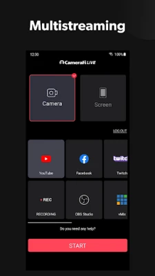 Choose between Camera and Screen modes to either broadcast your camera shooting or smartphone screen.