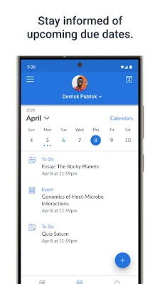 • View assignment descriptions and due dates • Set reminders for assignments • View assignment grades • View course grades • Set grade alerts • View course announcements