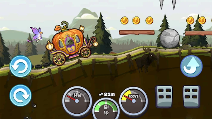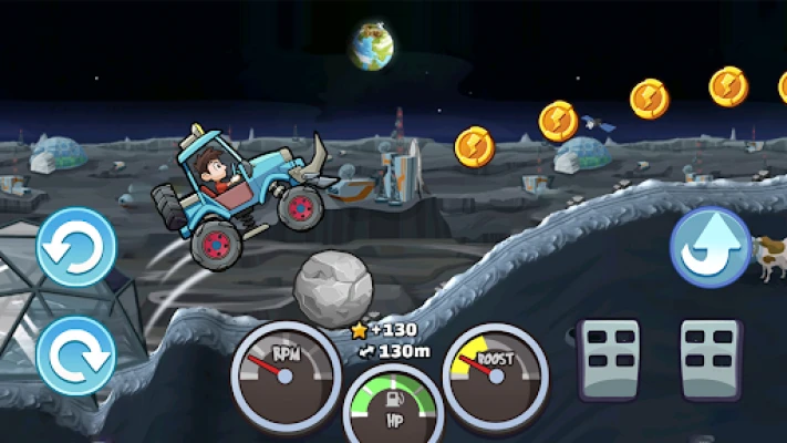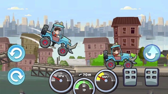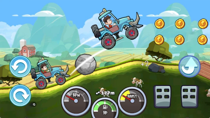Race the challenges of unique hill racing environments with many different cars. Gain bonuses from daring tricks and collect coins to upgrade your car and reach even higher distances. The game seems to be easy, but it's hard to be the winner.