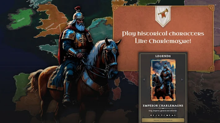 Charlemagne takes place during the years 800-1095, in Europe (as opposed to the game Clovis, which takes place between 481 and 800). It's based upon extensive historical research, to give you a truly medieval experience. You will face real geopolitical situations really encountered by rulers of the time, as well as characters and organizations that really existed. However, the game also takes some liberties when deemed necessary. The studio's motto: fun > realism.