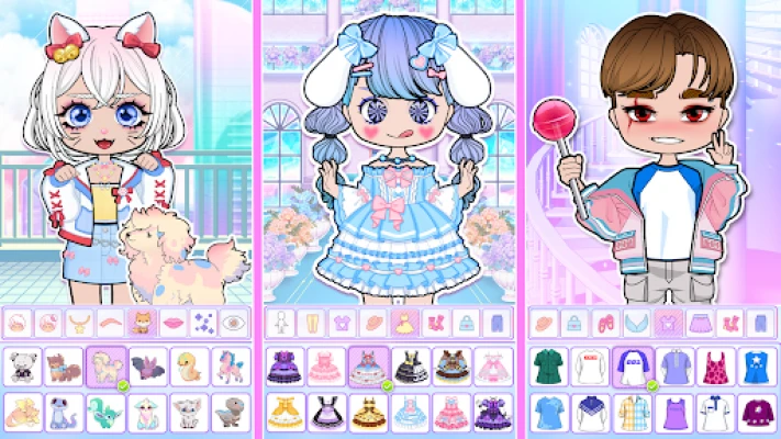 Cute and sweet chibi fashion game, avatar maker, avatar world games and kawaii doll dress up games for girls! Now you can make your character and become an incredible girly designer by dressing up girls. Name it Lily, Toca, Magic or Yoyo, or however, you want. You can use your chibi doll as a cute anime avatar for social networks, or create your fashionable life stories with your anime princesses. Try the Gacha wheel, surprise your friends, unleash your imagination, and upgrade your creative skills in the fashion DIY world game! Become a doll designer easily!