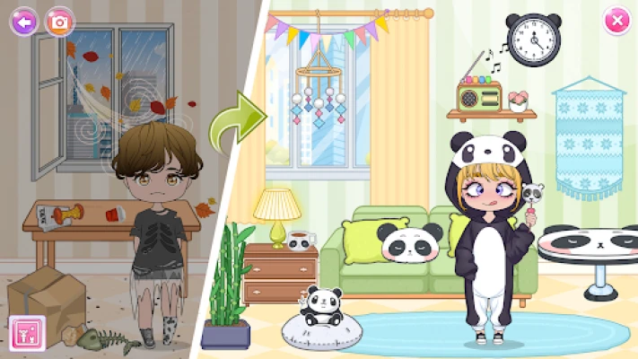 * Chibi Room - decorate and design a home girly world of Chibi dolls. Put your dressed up character, boca pets, paint walls, and floors, arrange room furniture, and many other things. Then you can go renovation in a relaxing environment. Explore and unlock funny secrets: turn on the TV, get your sweet chibi sleep, cut fruits, and many more while making a lovely home design!