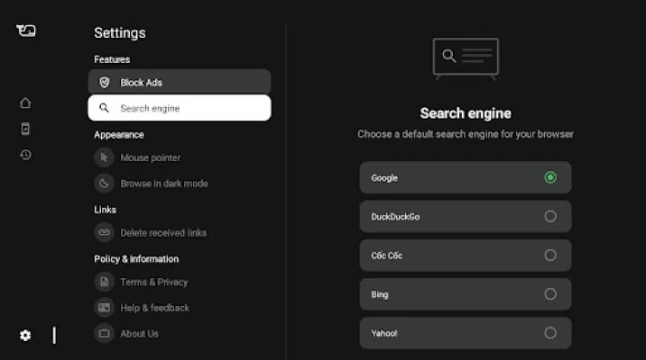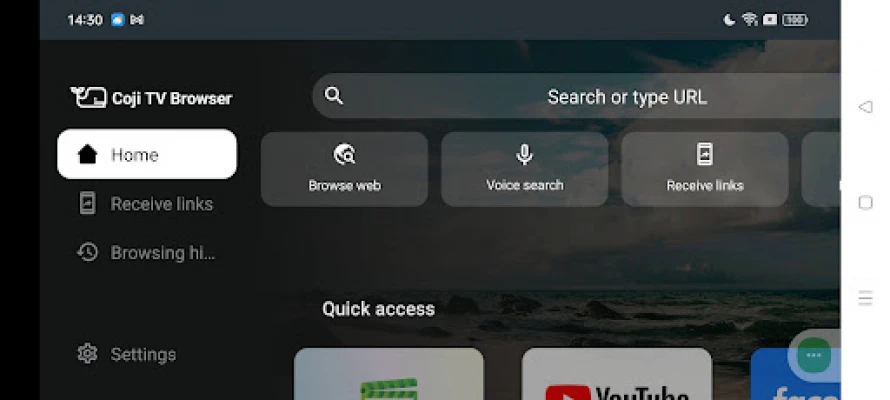 Coji TV Browser is a smart web browser made for Android TV. It works smoothly on TVs and TV boxes from Sony, TCL, Casper, Mi, Coocaa, and more.