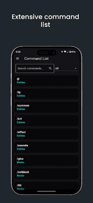 A complete command block reference with a searchable list of commands, explanations, and example uses. With over 100+ working command examples for both beginners and advanced users, this app is perfect for learning and creating powerful Minecraft commands!