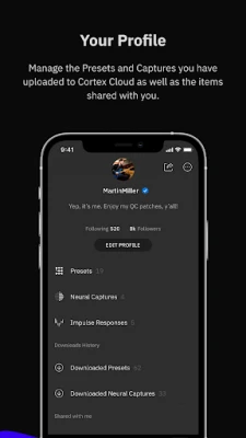 Benefits: Seamlessly send Presets, Neural Captures, and other items to your Quad Cortex. Manage your profile and items you have uploaded to Cortex Cloud. Browse & discover users. Share Presets & Neural Captures with your friends. Cortex Cloud requires you to have a free Neural DSP account and a registered Quad Cortex. Cortex Cloud is not required to use the Quad Cortex.