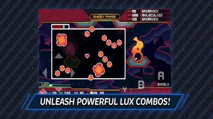 Braving the moonscape will require more than just a good eye and patience for clicking. In LunarLux's unique turn & action battle system: Timing is just as important as choosing attacks!