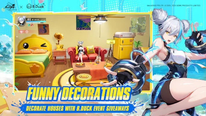 Get free B.Duck gifts, including mounts, emojis, avatar frame and other items, on B.Duck events! Win free household decorations by finding and taking photos with hidden B.Ducks. Witness the icon of giant B.Duck on the map. And experience all exciting events with B.Erserker joining the Conch Race!