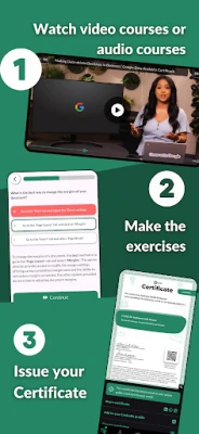 Receive your free digital certificate upon completion of your online course in video or audio. The certificate has a QR Code for validation and is automatically saved in the photo gallery of your cell phone and sent to your email.