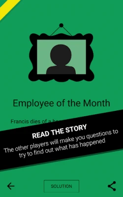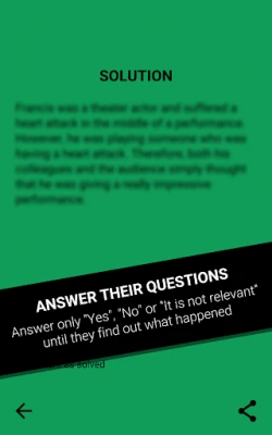 Then he/she reads its solution without telling the other people. The rest of the players then have to make questions in order to solve the mystery.