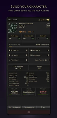 Customize your character with powerful stats and equipment. Experiment with different playstyles, from a swift rogue to a battle-hardened warrior. Your build defines how you fight and survive.