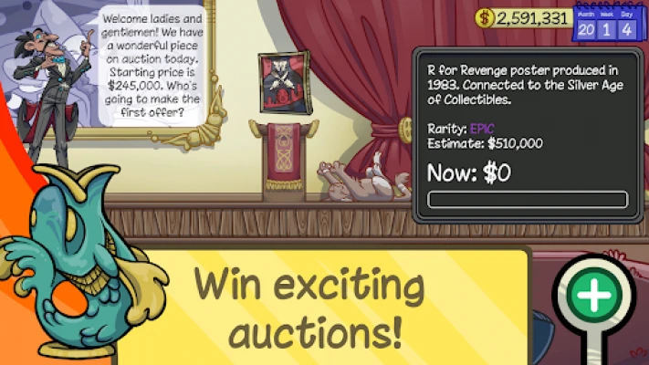 Begin your journey in a rundown shack and build up your business day by day by negotiating with customers, hiring employees and partaking in auctions.