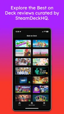 The Best on Deck tab showcases SteamDeckHQ’s top-rated titles with continuous scrolling for effortless browsing.