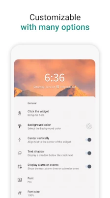 Features: · Lots of customizations · Support widget resizing (long tap to enter resize mode) · Changes take effect in real-time · Select millions of colors for the time and date with a RGB color picker · Select different background colors · Display next alarm or calendar event · App picker for selecting widget shortcut · Support different time/date formats · Supports Android 5.0 or above · Material design UI · Android tablet friendly! · Supports up to 50 languages!