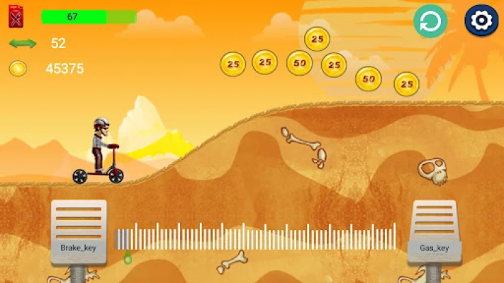• Responsive 2D physics hill-climb gameplay: throttle, brake, tilt, and keep your ride upright on bumpy tracks.