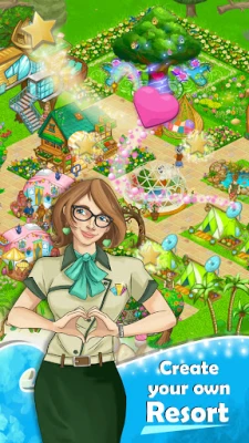 Accomplish over 250 Goals to keep your guests happy and build your empire. Upgrade the Huggable Tree, install luxurious accommodations & decor, visit the woodland spa or go shopping for souvenirs, rescue animals & swim with dolphins, keep the resort clean, and indulge in numerous other pursuits to earn precious Coins, Hearts, and Gems.