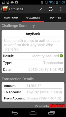 The Entrust IdentityGuard Mobile Smart Credential provides an innovative yet relevant authentication solution and is deployed on the IdentityGuard enterprise authentication platform. IdentityGuard’s comprehensive capabilities are designed to meet authentication needs across your organization including embedded support for diverse user group needs, cloud security, mobile security, and adaptive authentication all on a platform with unmatched deployment flexibility and agility.