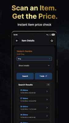 Scan any Path of Exile item with your phone camera and check trade prices right in the app — the fastest way to price check items in Path of Exile 1 and Path of Exile 2.