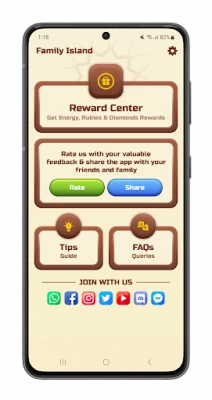 This app will provide you daily family island free energy so that you can keep playing the family island game. Wherever you are out of energy just visit Family Island Daily Rewards app and claim your family island energy, rubies and diamond bonus for free.