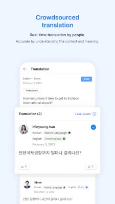 Tap open Flitto whenever you need help from a language expert while traveling, at work, or during your language studies!