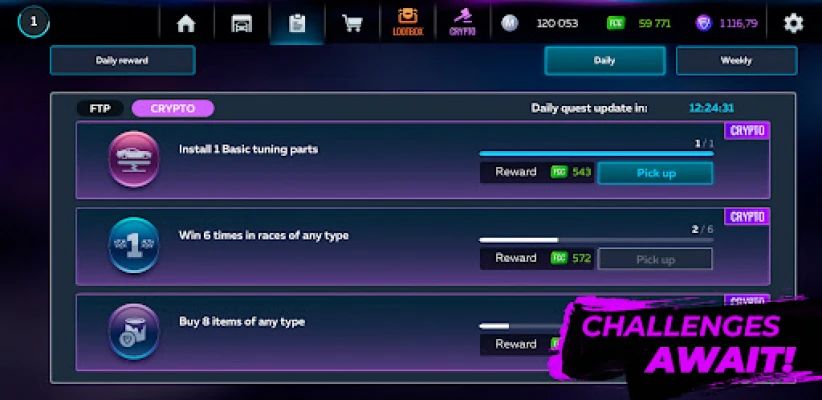 Use tuning components to upgrade the parameters of your vehicles and be the first to cross the finish line.