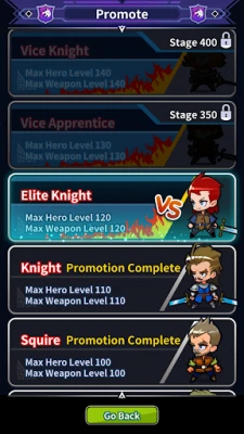 Break through your limits by using promotions. Unlock hero and weapon level restrictions to become a King.