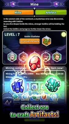 The mining won't stop even when you're away. You can synthesize powerful Artifacts using mined materials.