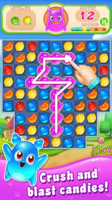 Play candy swap and switch fruit candy to make a match! A group of cute Jelly Monsters live in a fruit candy world. Join Blue Fruit, Red candy, Green gummy and Purple Jelly to solve fruity puzzles! Unlimited life!