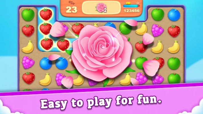 Fruits Link is a popular and unique puzzle game with different style. It has beautiful flowers, vivid running water, naughty animals.