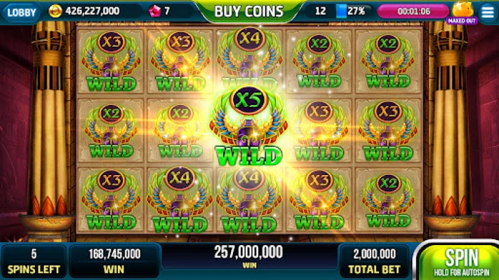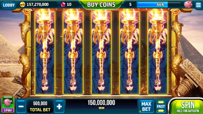 Select your slot machine game, set your bet, and tap 'Spin' to start! Match symbols to win, and keep an eye out for wilds and multipliers to boost your jackpot. Use quick spins or autoplay for continuous action and more chances to hit big!