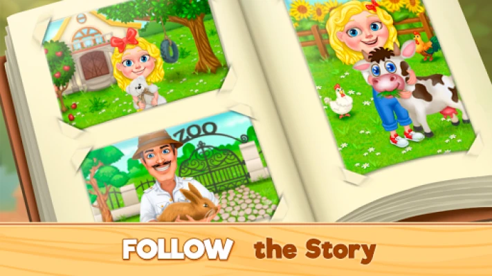 Play and win colorful match-3 levels to decorate and restore areas in the farm. Design a new home, choose exotic and wonderful exterior and interior pieces of furniture. Unlock new areas of the farm story, become friends with all the characters in the game!