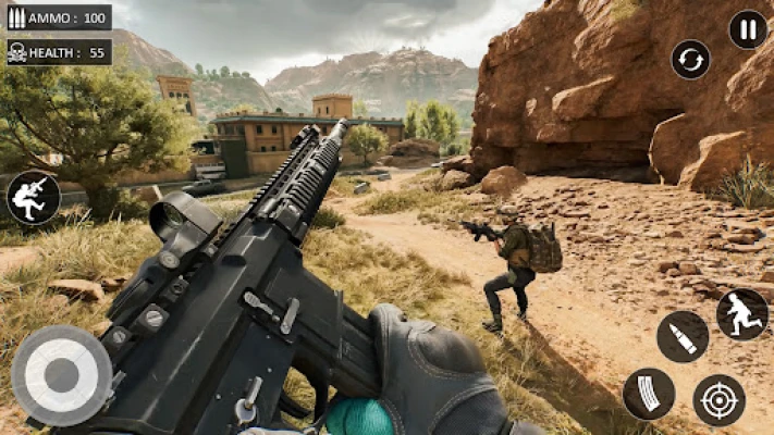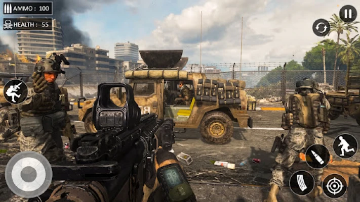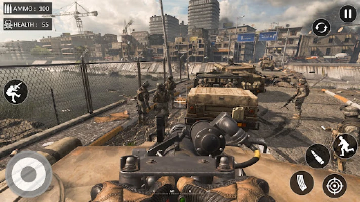 Get this free FPS Gun-Strike Shooting Games download, an adrenaline-fueled shooting game that plunges you into the heart of explosive combat. Strap on your tactical gear, grab your weapon of choice, and prepare for an immersive and action-packed experience like never before. In "Battlezone Assault: Armored Fury," you find yourself thrust into a war-torn landscape, where rival factions battle for supremacy in a dystopian future. As an elite soldier, it's up to you to navigate treacherous terrains, outmaneuver enemy forces, and unleash devastation upon your foes. With cutting-edge graphics and stunning visual effects, every explosion, bullet, and tactical move comes to life, drawing you deeper into the chaos of war.