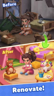 - Heartwarming Story:With every match game you win, you help make the family’s house beautiful again.'