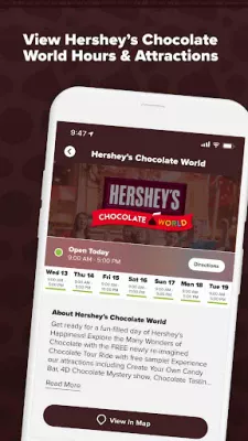 - View hours for area attractions, including Hershey's Chocolate World Attraction, Hershey Story Museum, and more