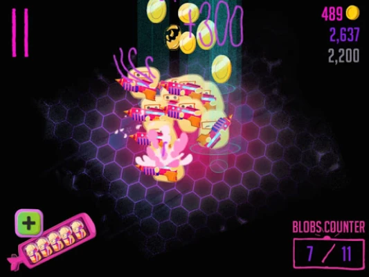 A weird abandoned planet, monsters lurking in the dark, and bright glowing lights... Could this planet be the end of the journey for the cute little Blobs? How long can you survive in this shooting game?