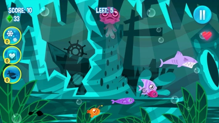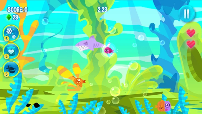 Fight for your survival, defeat enemies and play the Hungry Fish game!